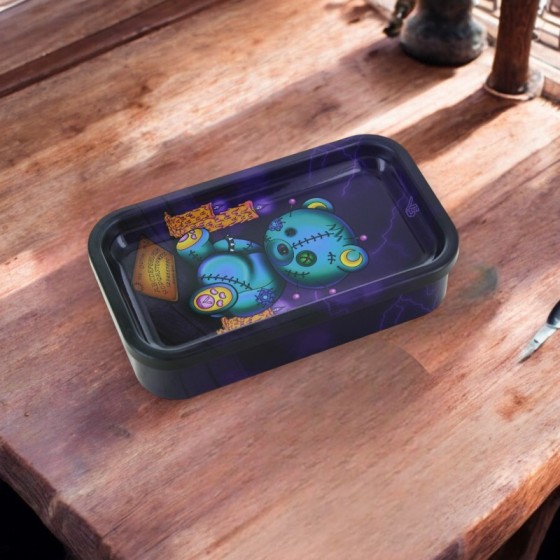 Boîte de rangement Ouija Bear – V-Syndicate. Métal anti-odeur, couvercle plateau, design ésotérique. 📦 Rangement + plateau ⚙️...