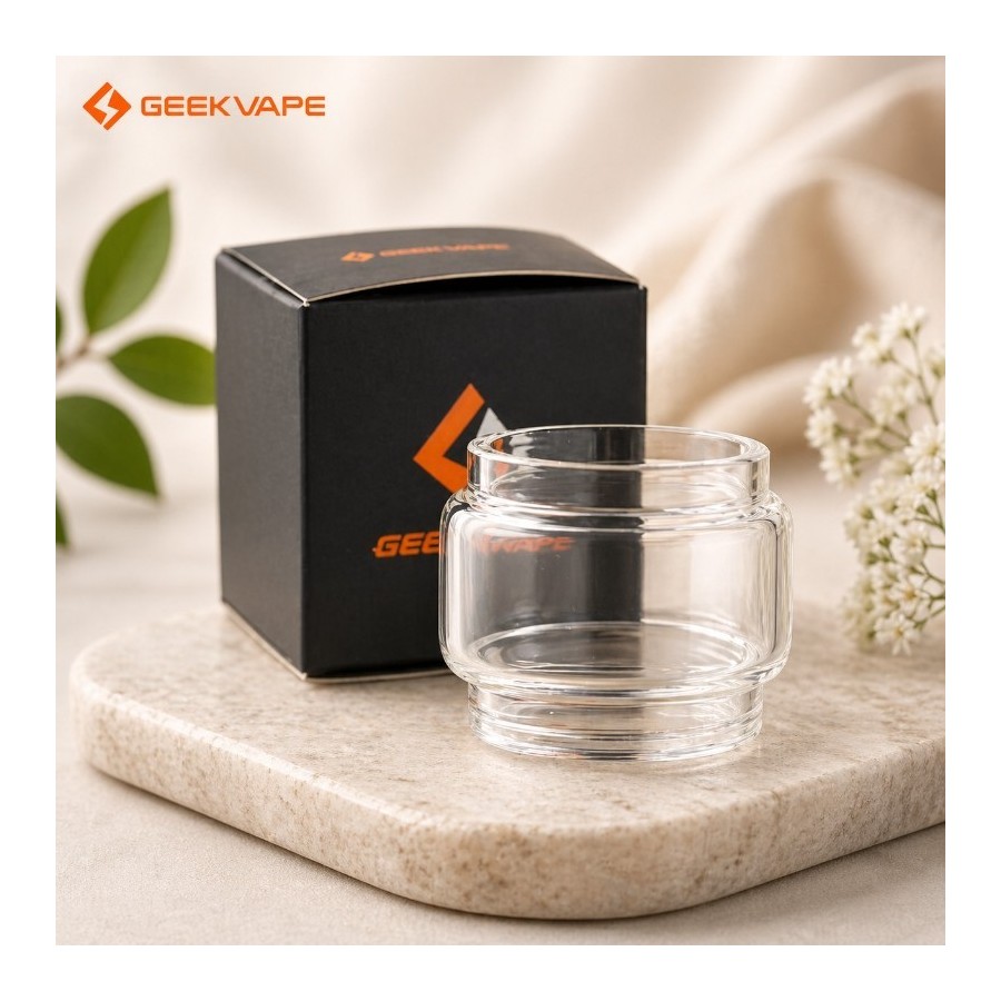 Pyrex de remplacement pour le clearomiseur Zeus standard de GeekVape. Format bulb bombé de 5,5 ml — augmente la contenance par rapport au verre standard inclus dans le kit. S'installe sans outil. ⚠️ Compatible exclusivement avec le Zeus GeekVape — ne pas confondre avec le Zeus Nano ou Zeus Max.