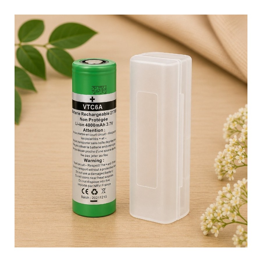 🔋 21700 (grand format) ⚡ 30 A continu 🏅 Sony VTC6A 🔋 4 000 mAh — autonomie XXL