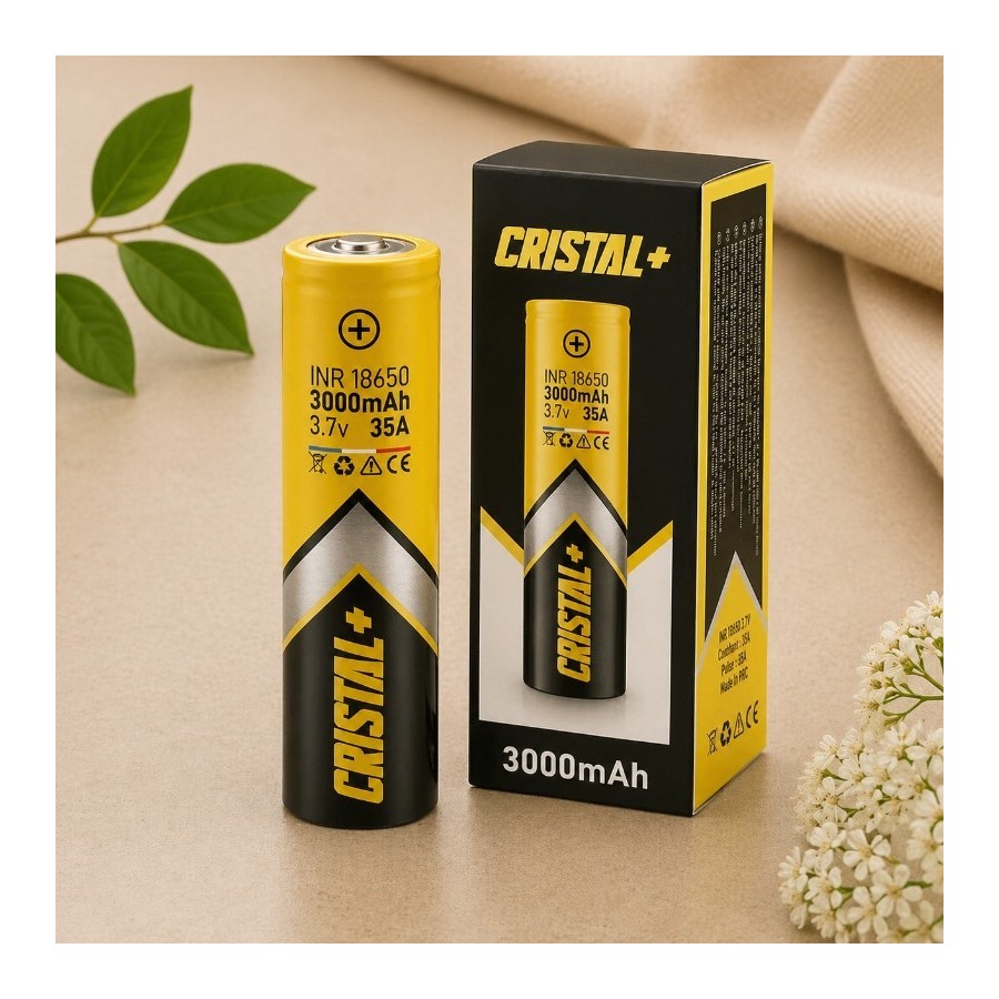 🔋 18650 ⚡ 35 A pulse · 20 A continu 🇫🇷 Cristal+ — France 💪 Haute performance