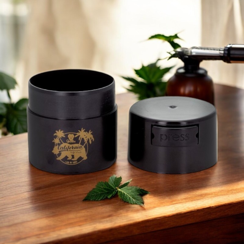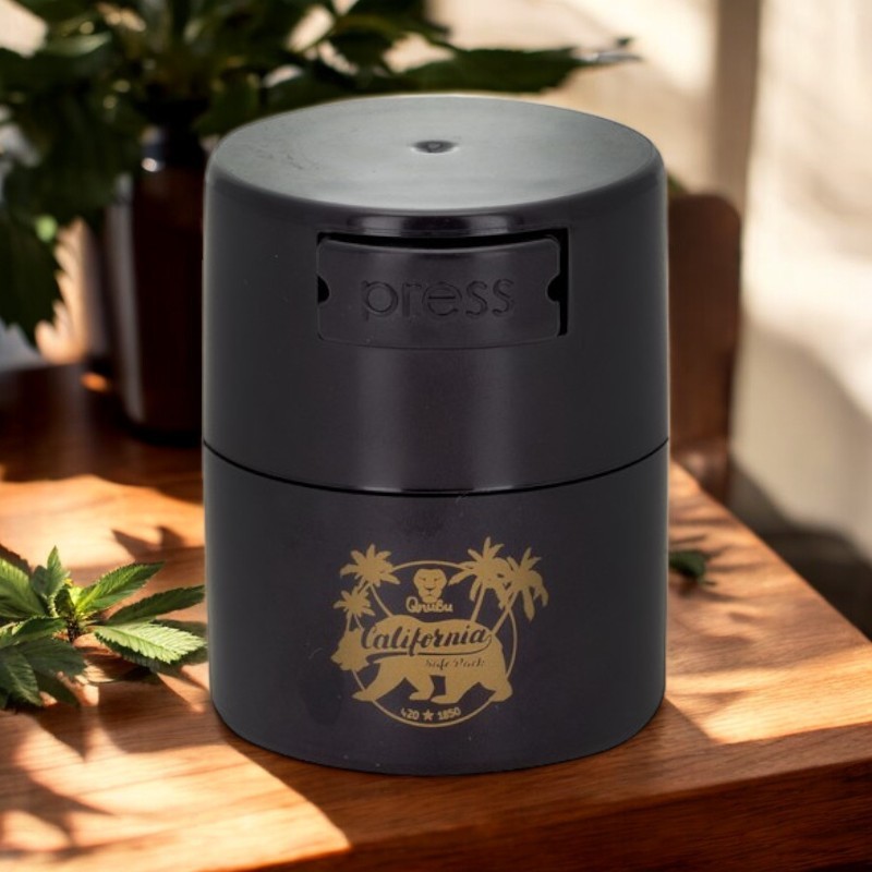 Le Conteneur California 120 ml de Qnubu est un bocal de conservation hermétique sous vide, conçu pour préserver la fraîcheur des fleurs de CBD et herbes aromatiques. Son système Easy Press permet de créer et de libérer le vide d'air en une seule pression. Plastique alimentaire noir opaque, anti-odeur, anti-humidité, sans BPA. Idéal pour un usage quotidien ou des petites quantités.