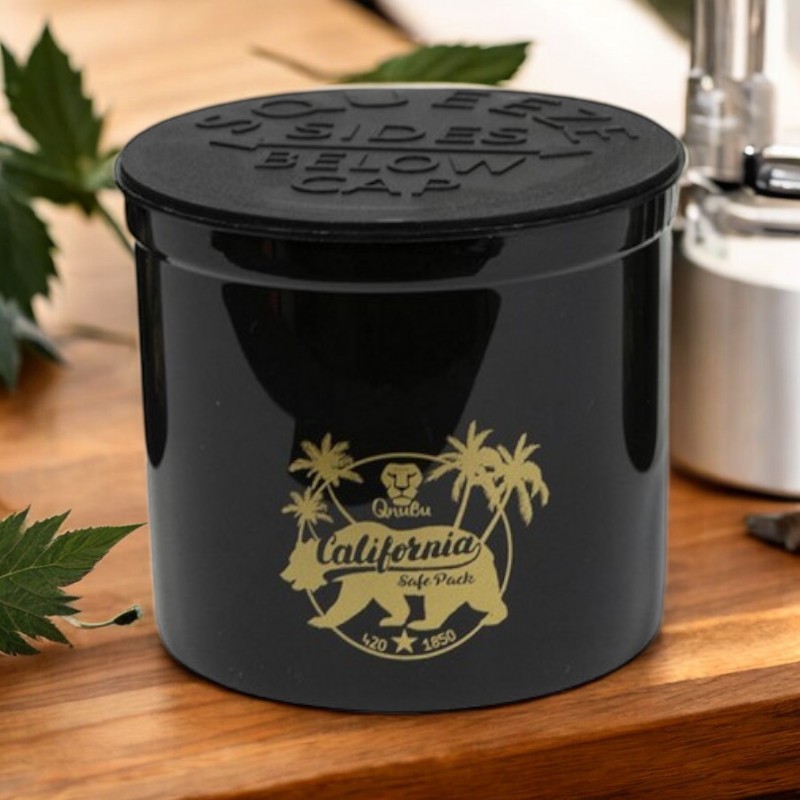 L'Étui Pop Qnubu California 330 ml est un contenant hermétique à ouverture par pression sur le dessus (système Pop Top) — il suffit d'appuyer pour ouvrir, relâcher pour refermer. Plastique alimentaire noir opaque, anti-odeur, anti-humidité, sans BPA. Format tube compact et facile à transporter, idéal pour le transport discret. Différent des conteneurs classiques Qnubu : pas de pompe à vide, ouverture directe par pression.