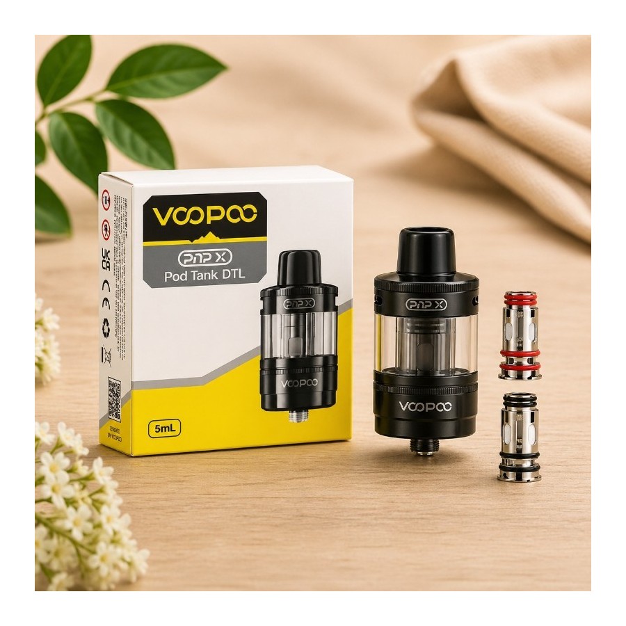Clearomiseur hybride PnP-X DTL Voopoo — 5 ml, top-airflow antifuite, 2 résistances incluses.
