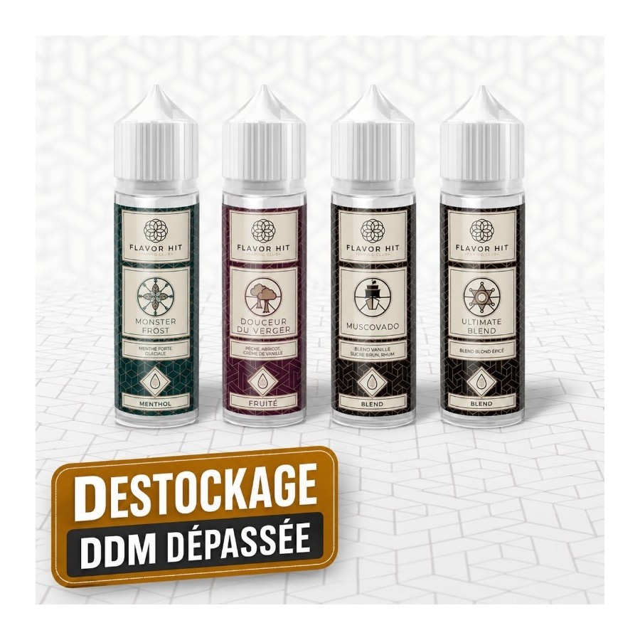 Ces e-liquides sont proposés à prix réduit car leur DDM (Date de Durabilité Minimale) est dépassée. La DDM n'est pas une date de péremption : elle indique la période pendant laquelle le fabricant garantit les qualités optimales du produit. Passée cette date, le produit reste consommable et sans danger — les arômes peuvent simplement être légèrement moins intenses. Aucun risque sanitaire.