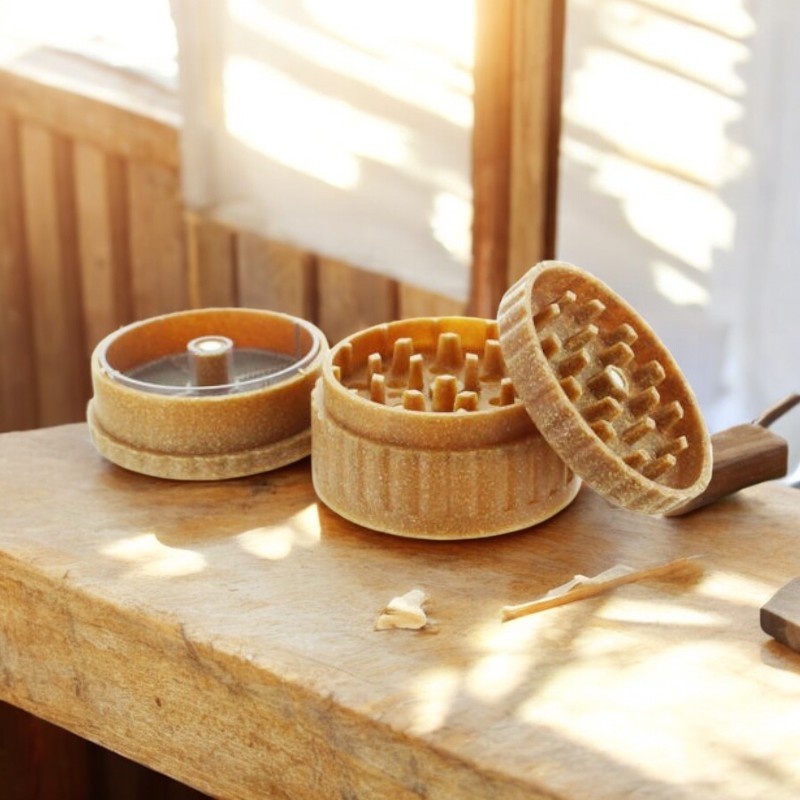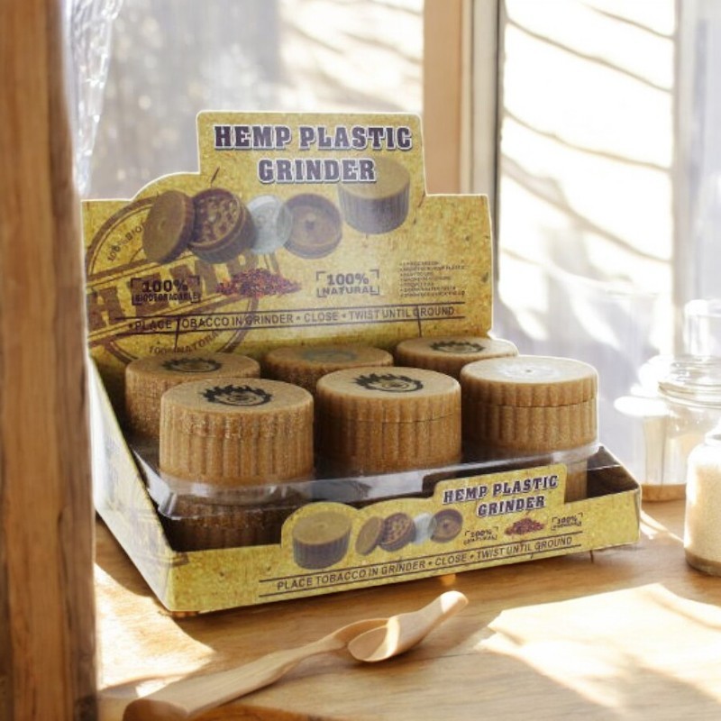 Le Grinder Kush Cosmos est fabriqué en fibres de chanvre naturel 100 % biodégradable — une alternative écologique aux grinders en aluminium ou plastique. 3 parties : couvercle magnétique, chambre de broyage et chambre de stockage. Dents de requin pour un effritage efficace. Léger et discret, parfait pour un usage quotidien respectueux de l'environnement.