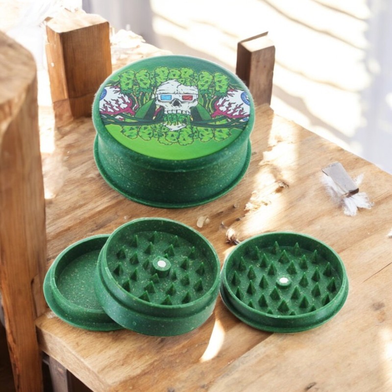 Le Grinder Beuz Skeleton Chanvre est la version biodégradable du Skeleton, fabriquée en fibres de chanvre naturel compressées — sans aluminium, sans plastique conventionnel. 3 parties : couvercle magnétique avec motif squelette gravé, chambre de broyage et chambre de stockage. Dents de requin pour un effritage rapide et homogène. Léger, format poche, en fin de vie entièrement biodégradable.
