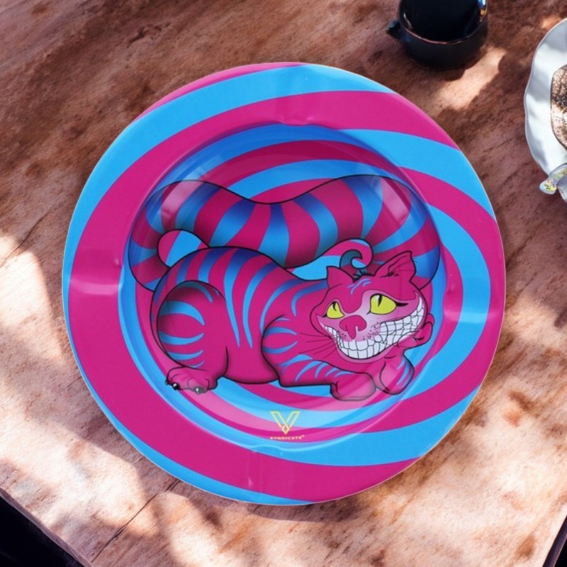 Cendrier en métal de la marque V-Syndicate avec le design Seshiger Cat — un chat en mode détendu et décalé. 4 encoches sur le bord pour poser les cigarettes. Compact, léger, facile à nettoyer. Assorti au plateau et à la boîte de la même édition.