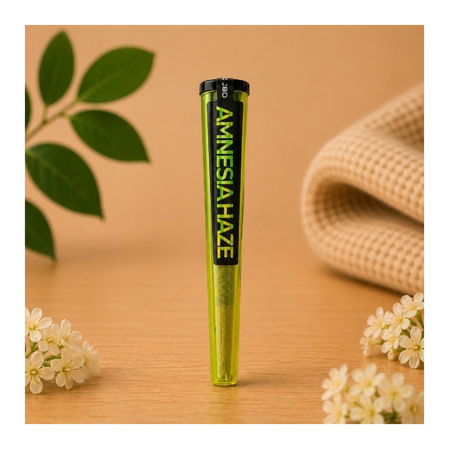 100 % fleur de CBD Amnesia finement broyée, sans trim ni résidus végétaux. Sans tabac, sans nicotine. Roulé dans une feuille de chanvre.