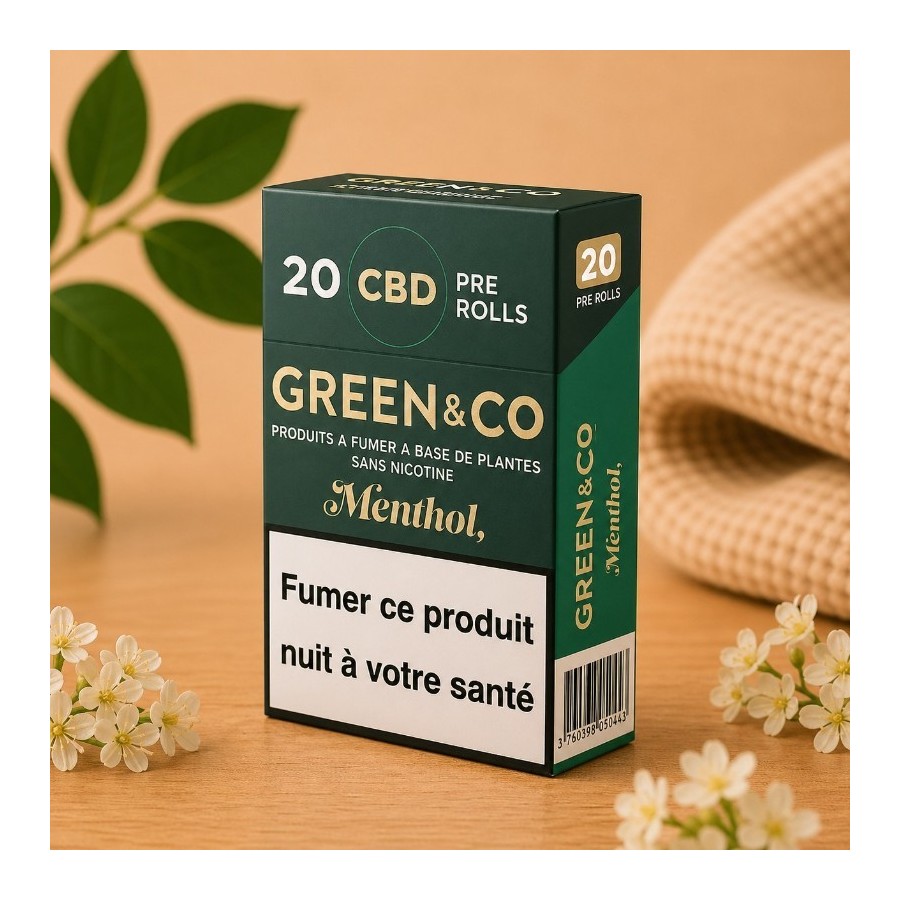 ❄️ Menthol et chanvre 🚫 Sans tabac ni nicotine 📦 Green & Co — 20 unités ✨ Format paquet cigarette