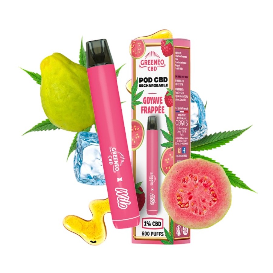 Puff CBD Rechargeable Goyave Frappée — Greeneo × Wilo | 1 % CBD | Kit ou Recharge