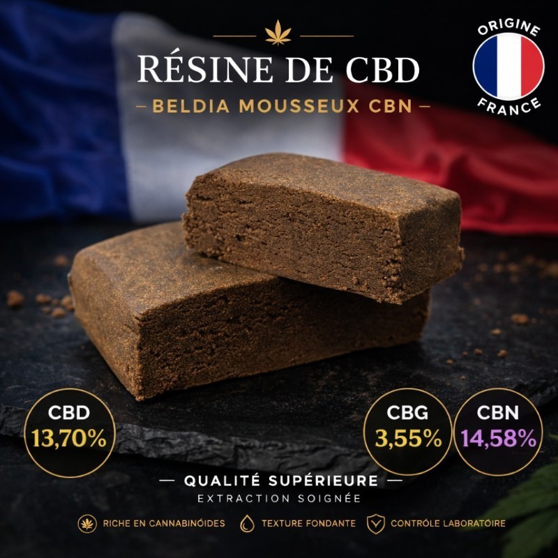 Issu de la tradition marocaine, le Beldia est un hash emblématique reconnu pour son tamisage fin et naturel. Cette version revisitée conserve toute l'authenticité de ce savoir-faire ancestral, tout en intégrant du CBN — un cannabinoïde naturellement présent dans le chanvre. Le résultat est un profil cannabinoïde inédit, entre tradition et formulation moderne.