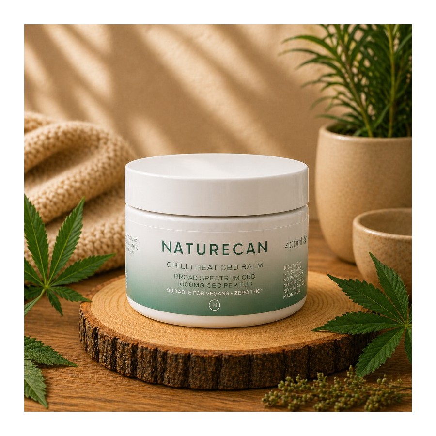 Baume topique de la marque britannique Naturecan, formulé avec de la capsaïcine (extrait naturel de piment) et du CBD de haute qualité sans THC. La capsaïcine produit une sensation de chaleur profonde à l'application lors du massage. Usage externe uniquement. Sans THC, conforme aux normes cosmétiques en vigueur.