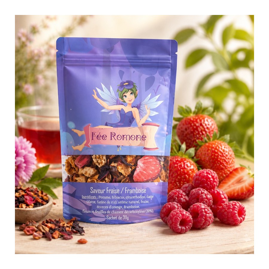 Fée Romone est une véritable adepte de l'amour, autrefois proche de Cupidon. Chaque rupture la touche profondément. Pour raviver les flammes et offrir un peu de douceur à ceux qui en ont besoin, elle a concocté une potion aux saveurs de fraise sucrée et de framboise acidulée.